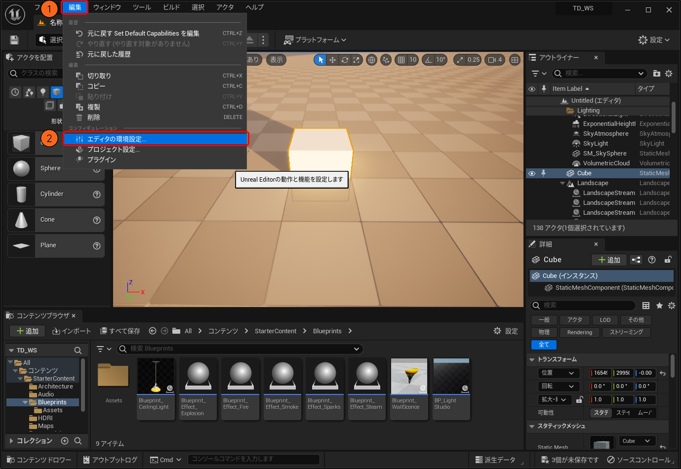 | 選択アセットの場所をCBで表示 | : Ctrl + B |