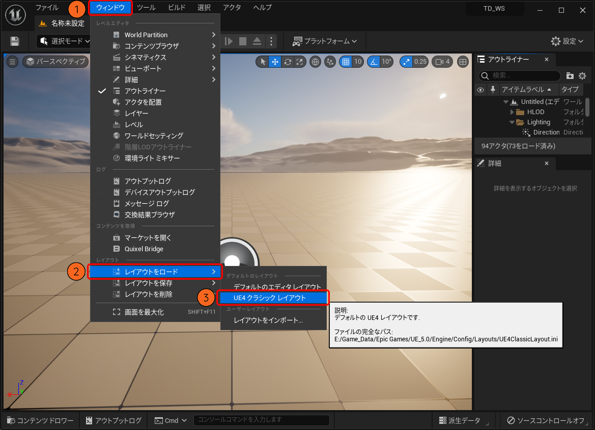 | アセットを開くウィンドウを開く | : Ctrl + P |